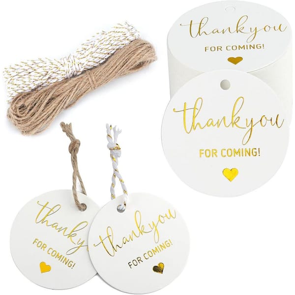 100Pcs Thank You for Coming Tags White High-End Kraft Paper with String Round Gold Foil Labels Personalized Gift Tags