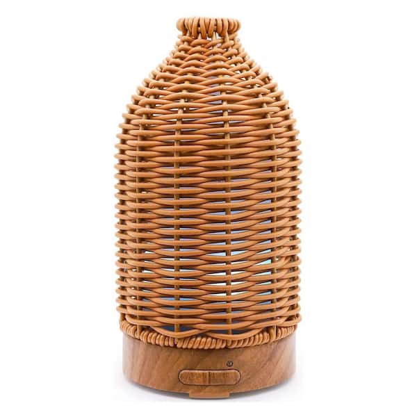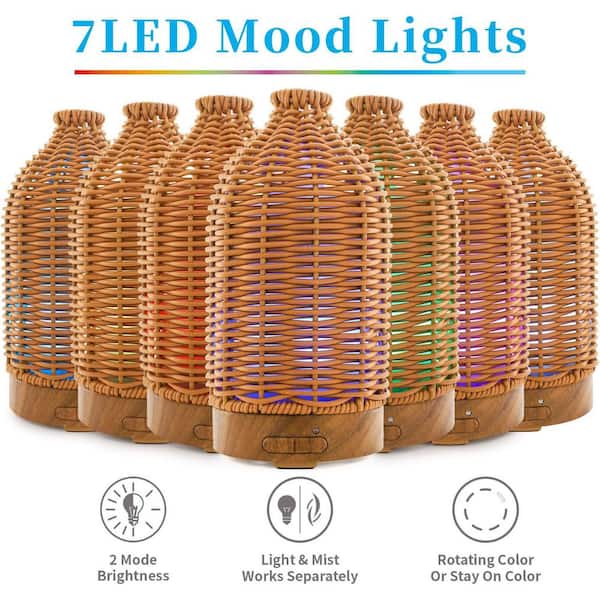 100ml Rattan Essential Oil Diffuser Aromatherapy Humidifier 7 LED Light Quiet Mist for Home Office Tan Piece