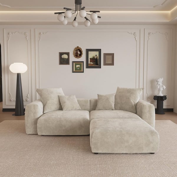 102.36 in. Square Arm Corduroy Modular 3-Piece L-Shaped Sofa Couch with Deep Seats and Ottoman For Living Room in. Beige
