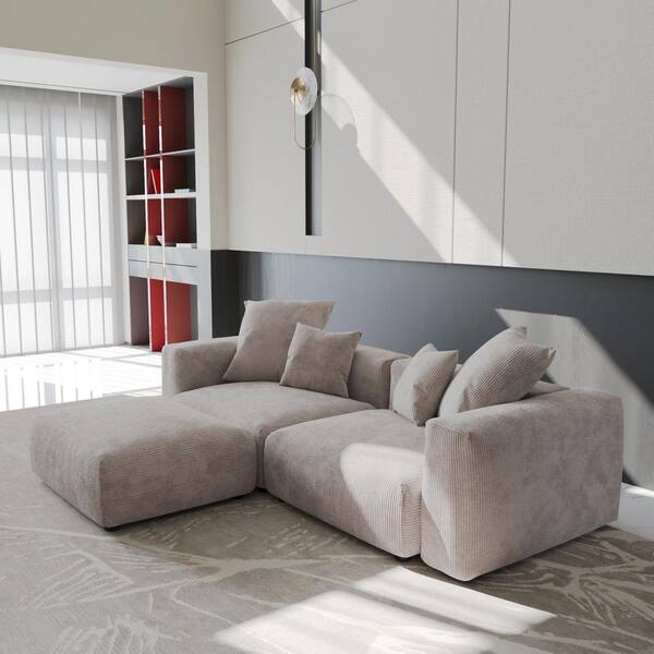 102 in. Square Arm Corduroy 3-Piece Modular Living Room Sectional Sofa with Deep Seat and Ottoman in Brown 3-Seater