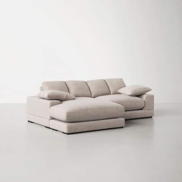 106 in. Wide Square Arm Polyester Fabric L-Shaped Sofa Oversized Deep-Seated 2-Pieces Sectional Couches in White