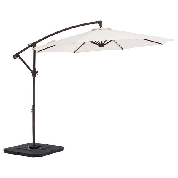 10ft Cantilever Offset Patio Umbrella with Weighted Base in Off-White