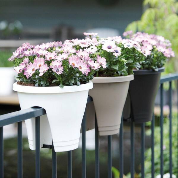 11-1/2 in. Round Anthracite Flower Bridge Plastic Planter (Set of 2)
