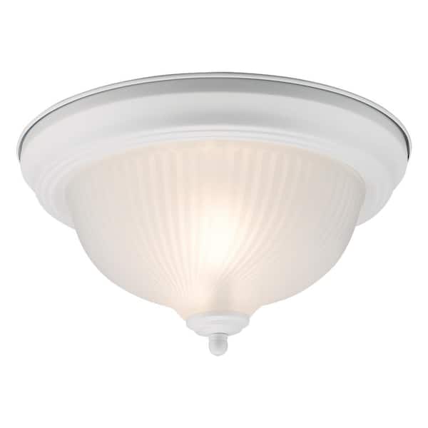 11.25 in. 2-Light White Flush Mount Ceiling Light Fixture with Frosted Swirl Glass Shade