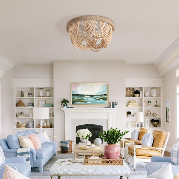 11.5 in. 4-Light Indoor Wood Boho Ceiling Fan with Light Kit and Remote Control Wood Beaded Flush Mount Ceiling Fan
