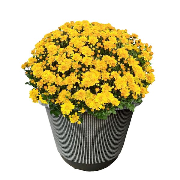 11.5 in. Chrysanthemum (Mum) Plant in a Decorative Pot with Yellow Flowers