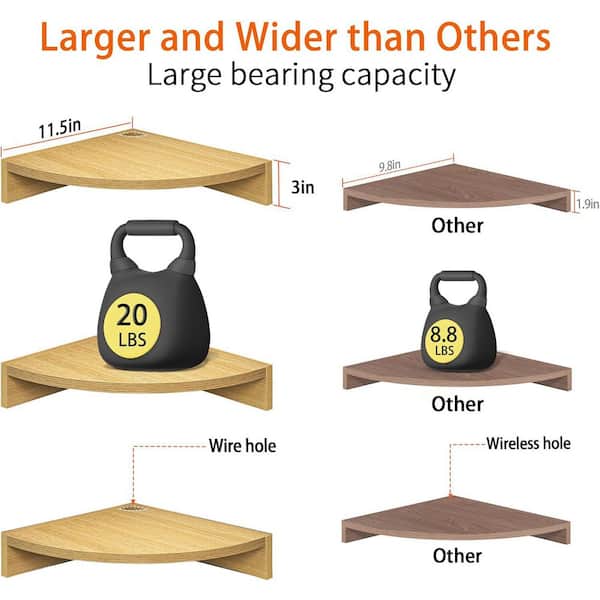 11.5 in. W x 11.5 in. D Oak Wood Corner Shelves Decorative Wall Shelf (3-Pack)