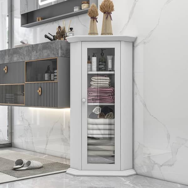 11.5 in. W x 6.9 in. D x 42.4 in. H White MDF and Glass Freestanding Bathroom Cabinet Linen Cabinet with Painted Finish