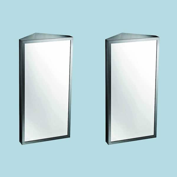 11-7/8 in. Width Corner Medicine Cabinet Satin Brushed Stainless Steel (Set of 2)