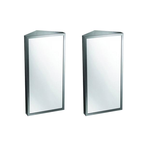 11-7/8 in. Width Corner Wall Mount Medicine Cabinet in Brushed Stainless Steel (Set of 2)