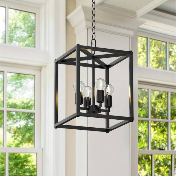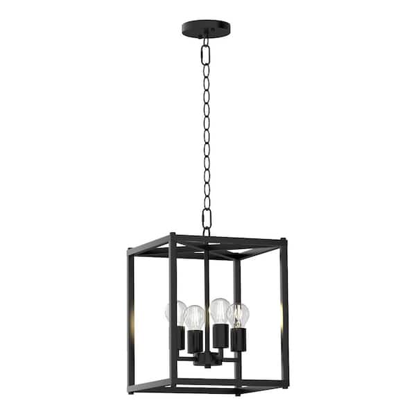 11.81 in. 4-Light Farmhouse Black Chandeliers with Caged Metal Shade and Adjustable Length