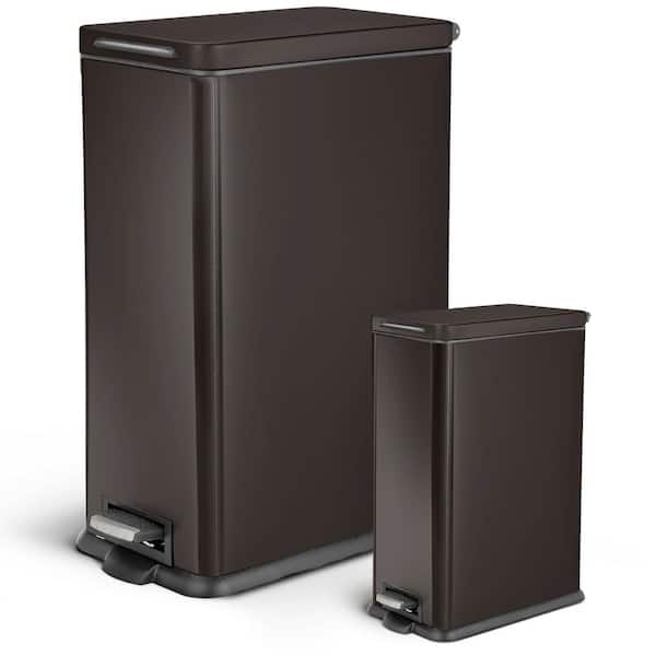 11.9 Gal. and 2.5 Gal. Stainless Steel Step on Kitchen Trash Can Combo Value Set with Soft Close Lid