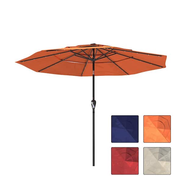 11 ft. LED 3-Tier Market Patio Umbrella with Double Airvent in Orange