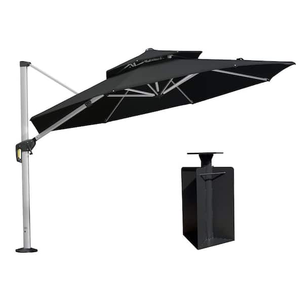 11 ft. Octagon High-Quality Aluminum Cantilever Outdoor Patio Umbrella with Base in Ground, Black