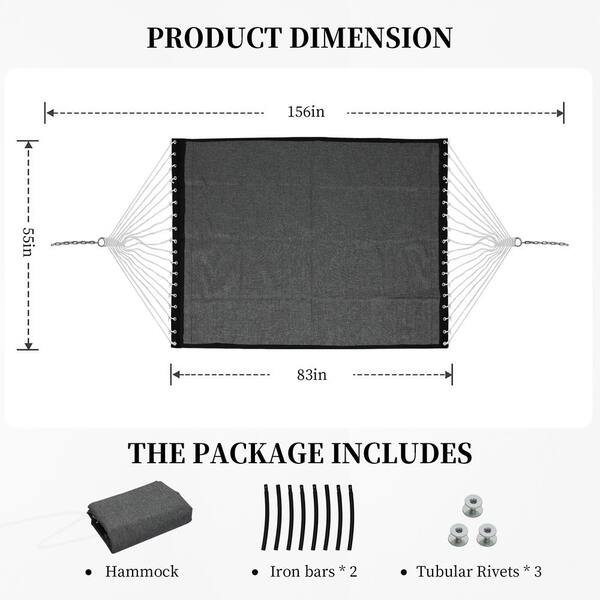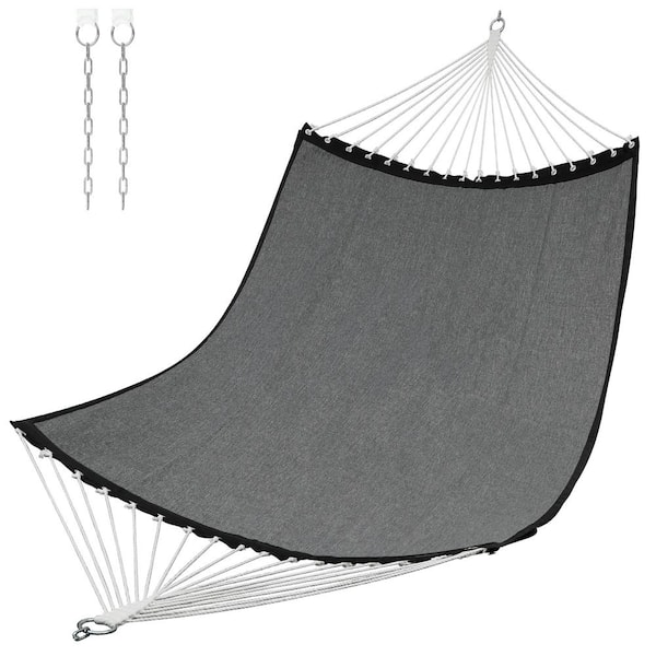 11 ft. Quilted Double 2-Person Olefin Portable Hammock with Curved Spreader Bars, Dark Gray