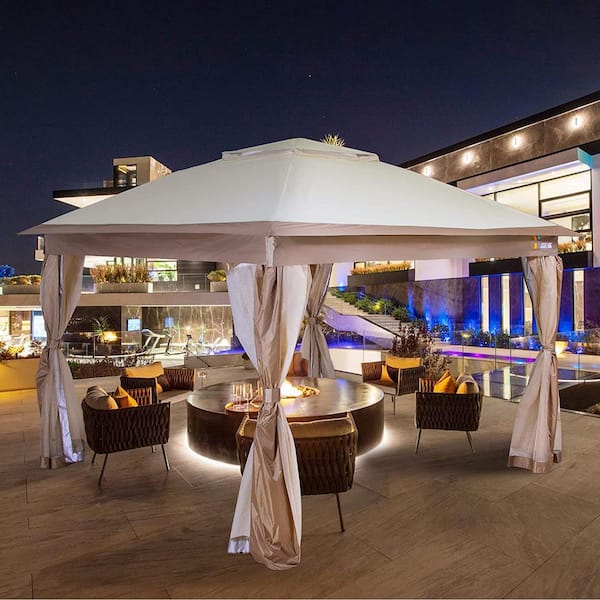11 ft. x 11 ft. Khaki Pop Up Gazebo Outdoor Instant Canopy Tent Portable Sun Shelter with Mosquito Netting and Carry Bag