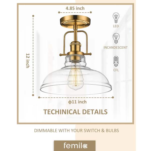 11 in.1-Light Champagne Bronze Finish With Clear Glass Semi-Flush Mount Light