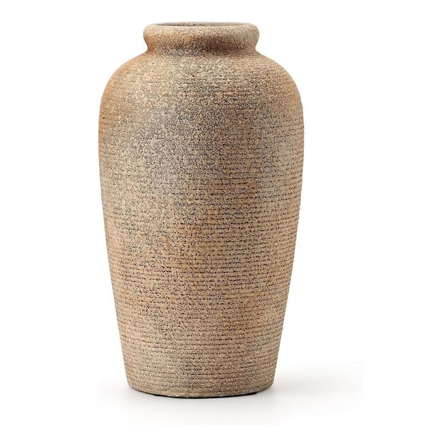 11 in. Brown Round Ceramic Decorative Farmhouse Tall Vase for Home Decor, Living Room, Shelf Decor, Enterway, Wedding