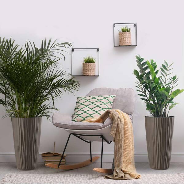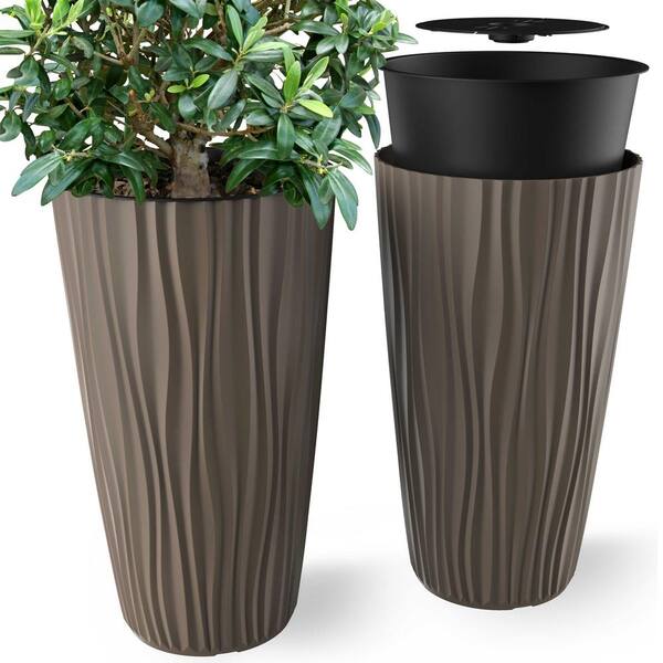 11 in. x 20 in. Toscana, Indoor/Outdoor Planter with Built-In Drainage, M-Resin, Small, Mocha (2-Piece)