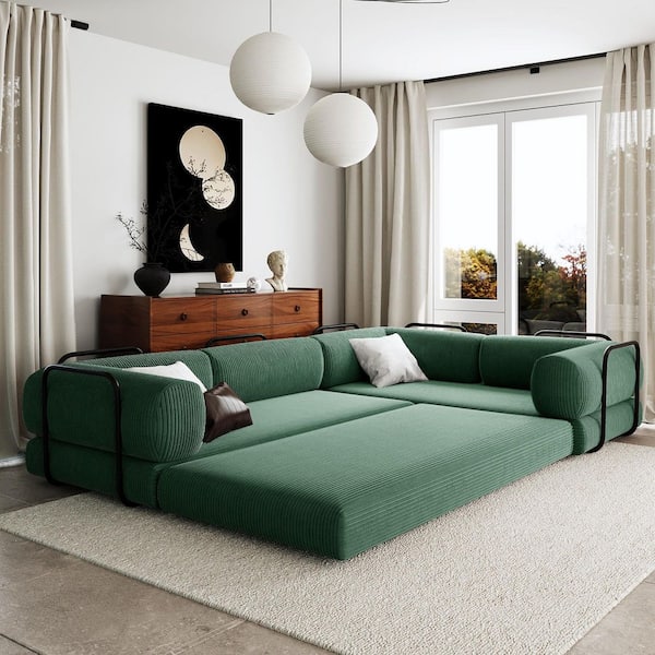 115 in. Green Corduroy Fabric Full Size Foam-Filled Sofa Bed
