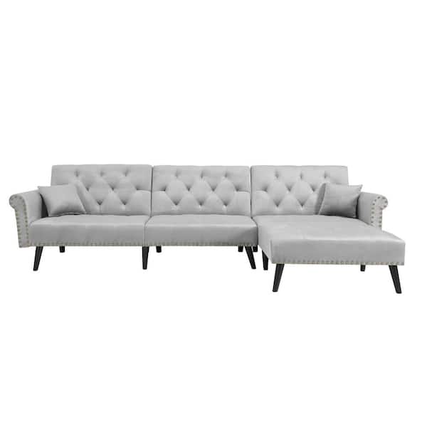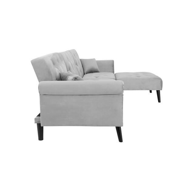 115 in. W Rolled Arms Velvet 4-Seat L Shaped Convertible Sofa in Gray