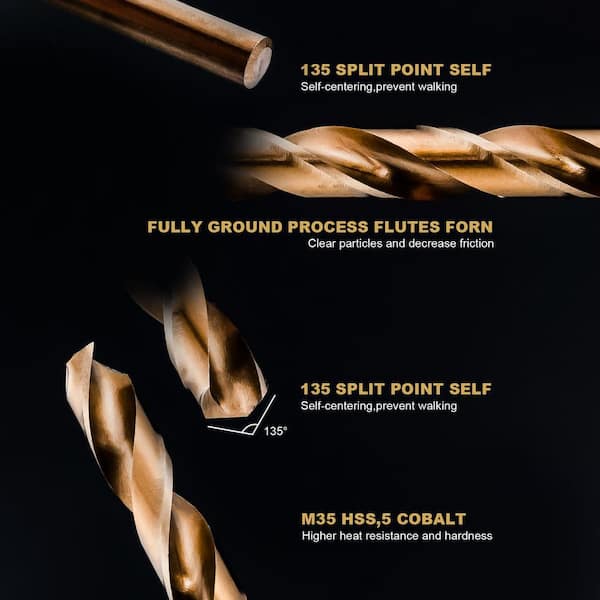 115PCS Cobalt Drill Bit Set M35 HSS for Hardened Steel with Indexed Metal Case 1/16-1/2 A-Z #1-#60