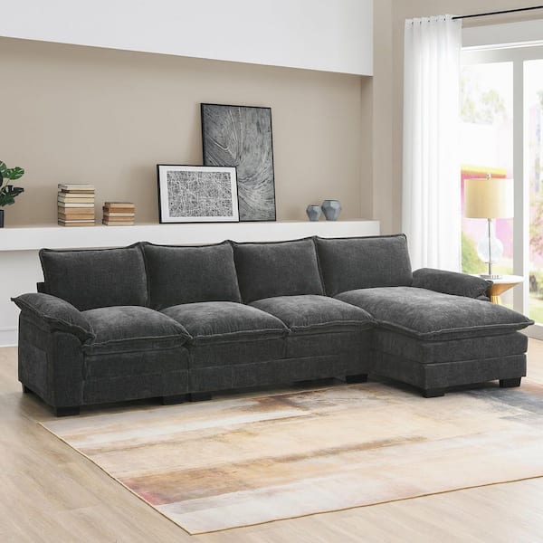 118 in. Square Arm 4-piece L Shaped Chenille Modern Sectional Sofa in. Dark Gray with Reversible Chaise For Living Room