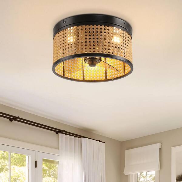 12.2 in. Indoor 3-Speeds Black Caged Ceiling Fan with Remote Control