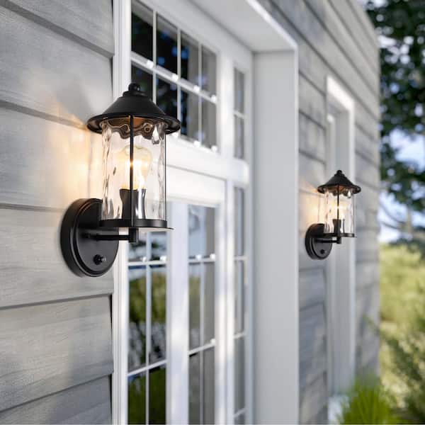 12.25 in. Black Outdoor Dusk to Dawn Hardwired Glass Wall Lantern Scones with No Bulbs Included(2-Pack)