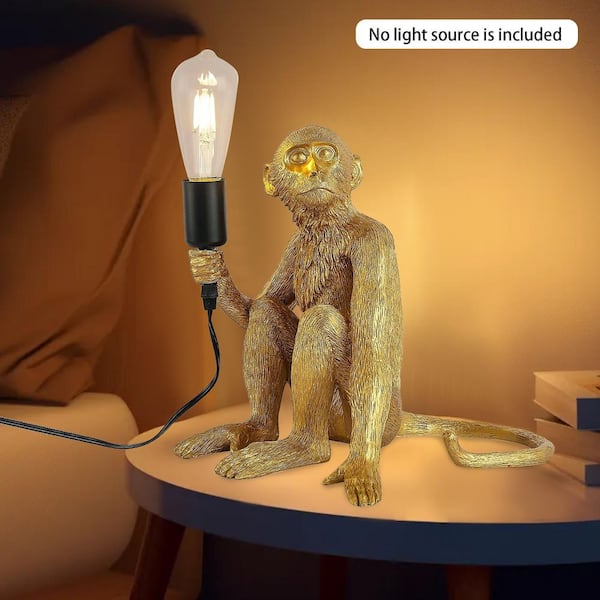 12.5 in. Gold Retro Decorative Desk Resin Sitting Monkey Table Lamp