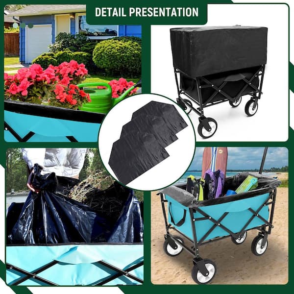 12.78 cu. ft. Turquoise Steel Garden Cart, Collapsible Foldable Wagon Cart for Camping Shopping Sports Gardening