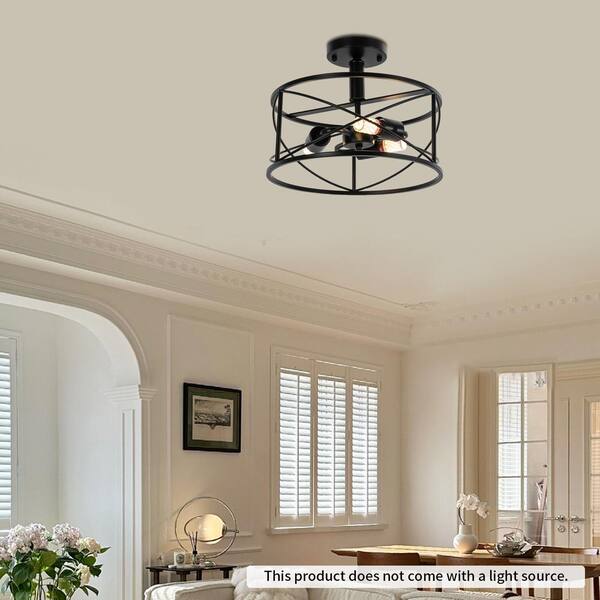 12.99 in. 3-Light Black Industrial Semi-Flush Mount Ceiling Light with Metal Lampshade, No Bulbs Included