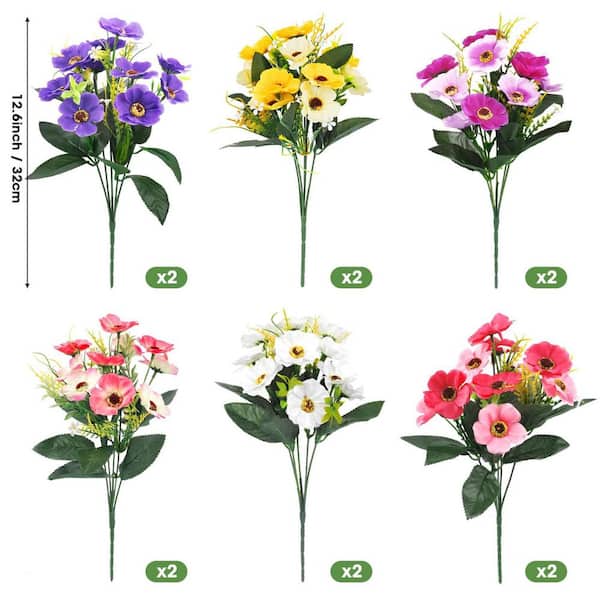 12 Bundles 12.6 in. Multi-Colored Artificial Flowers for Outdoors Decoration UV Resistant Fake Plastic Artificial Plants