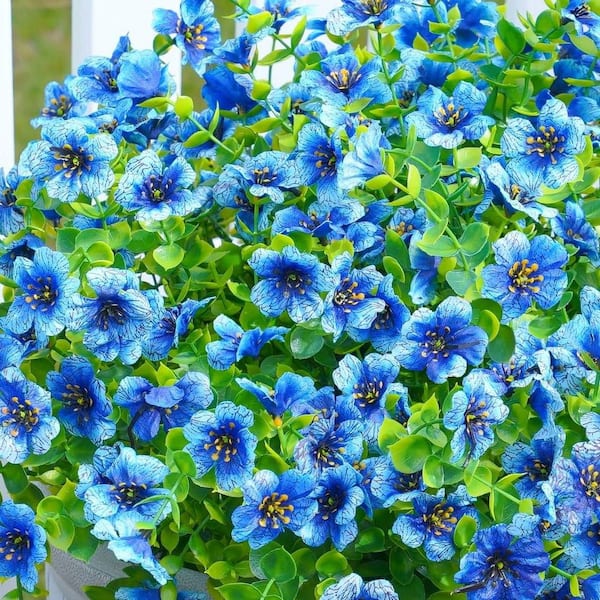 12 Bundles 13.8 in. Blue Artificial Faux Flowers Silk Daisy with Eucalyptus