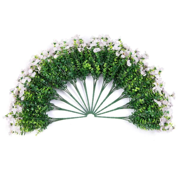 12 Bundles 13.8 in. Creamy White Artificial Faux Flowers Silk Daisy with Eucalyptus