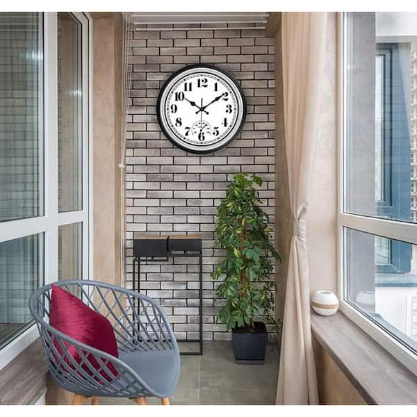 12 Inch Silver Round Retro Wall Clock with Thermometer (Battery Operated)