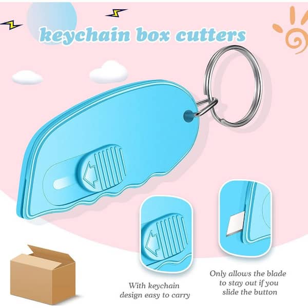 12 Pack Mini Box Cutter Portable Keychain with Auto Retractable Blade Utility Knives Letter Opener for Packages
