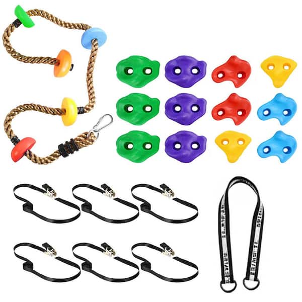 12-Pack Ninja Tree Climbing Holds with Swing, 230 lb. Capacity, 6.56 ft. Rope, Multi-Color Obstacle Course Set