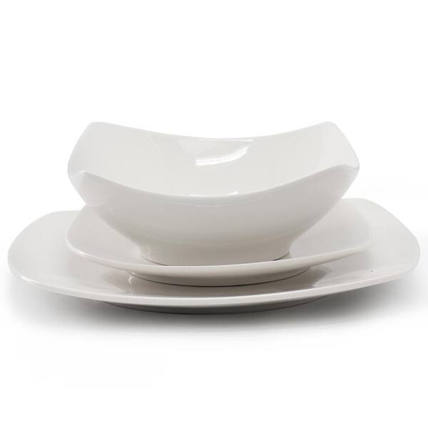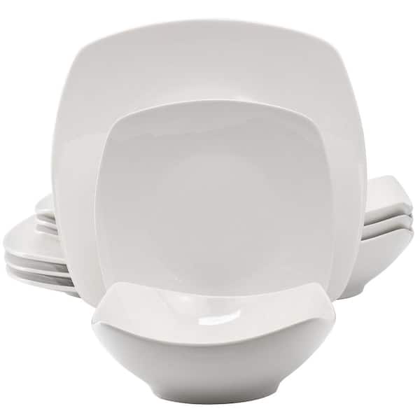 12 Piece Square Fine Ceramic Dinnerware Service Set For 4 in White
