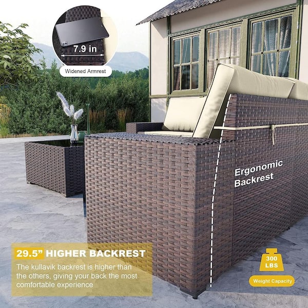 12-Piece Wicker Outdoor Sectional Set with Cream Cushion