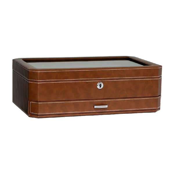 12-Slot Brown Rectangular Faux Leather Cufflinks