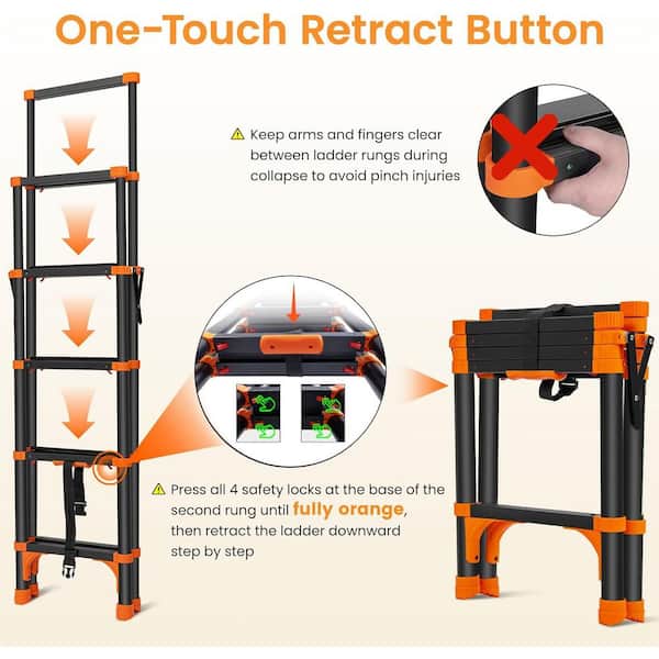 12 ft. Aluminum Telescopic Ladder with 1-Button Retraction, Portable Lightweight Folding Ladder, 330 lb. Capacity