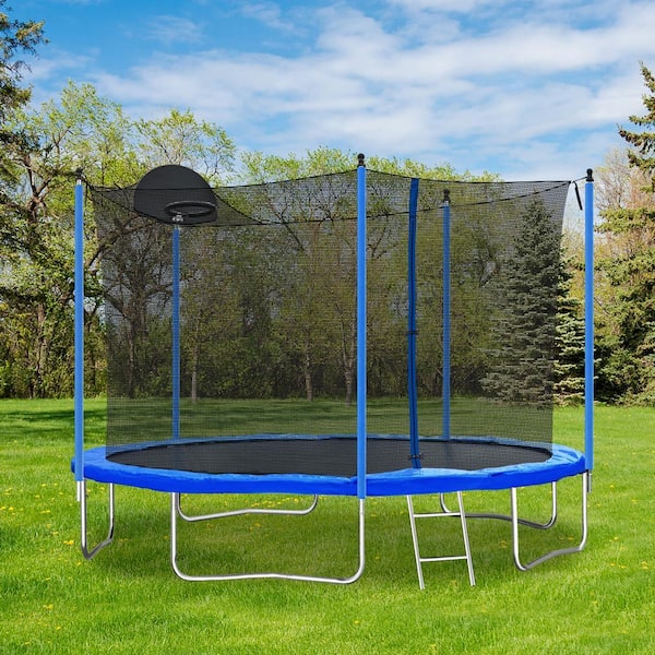 12 ft. Outdoor Big Trampoline with Inner Safety Enclosure Net, Ladder, PVC Spring Cover Padding, Heavy-Duty Jumping Mat