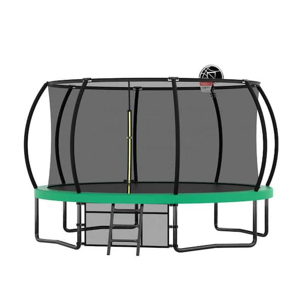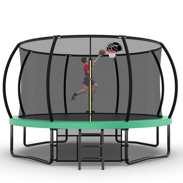 12 ft. Recreational Kids Trampoline with Safety Enclosure Net and Ladder, Outdoor Recreational Trampolines
