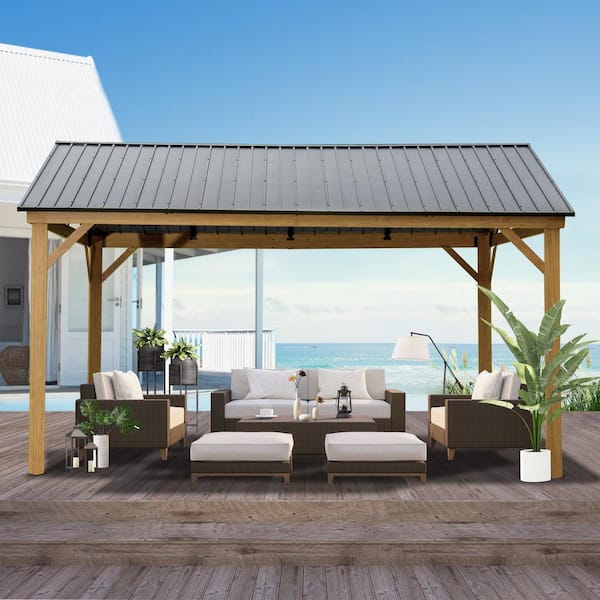 12 ft. x 14 ft. Aluminum Hardtop Gable Gazebo Wood-Look Galvanized Steel