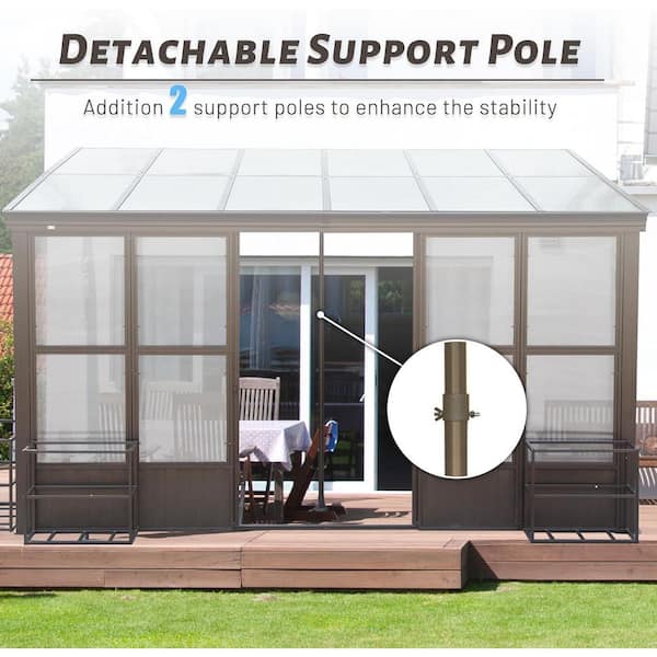 12 ft. x 14 ft. Dark Brown Outdoor Permanent Wall Mounted Solarium with Detachable Windows, 2 Lockable Sliding Doors