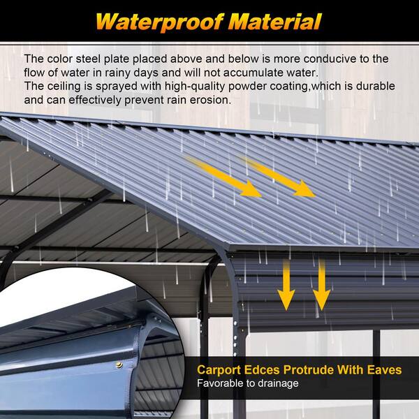 12 ft x 20 ft Metal Outdoor Heavy Duty Carport, All Weather Galvanized Steel Outdoor Car Shelter for Cars, Trucks, Black