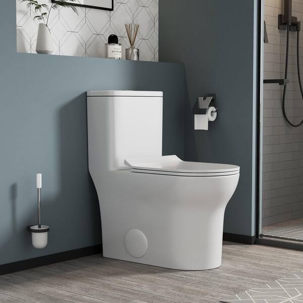 12 in. 1-Piece 1.1/1.6 GPF Dual Flush Comfort Height Floor Mounted Elongated Toilet in White Soft Close Seat Included