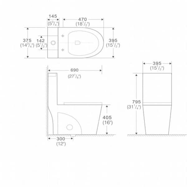 12 in. 1-Piece 1.28/1.6 GPF Dual Flush Elongated Toilet in Glossy White with Soft Close Seat
