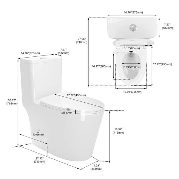 12 in. 1-piece 1.1/1.6 GPF Dual Flush Elongated Toilet in Soft Close Seat Included